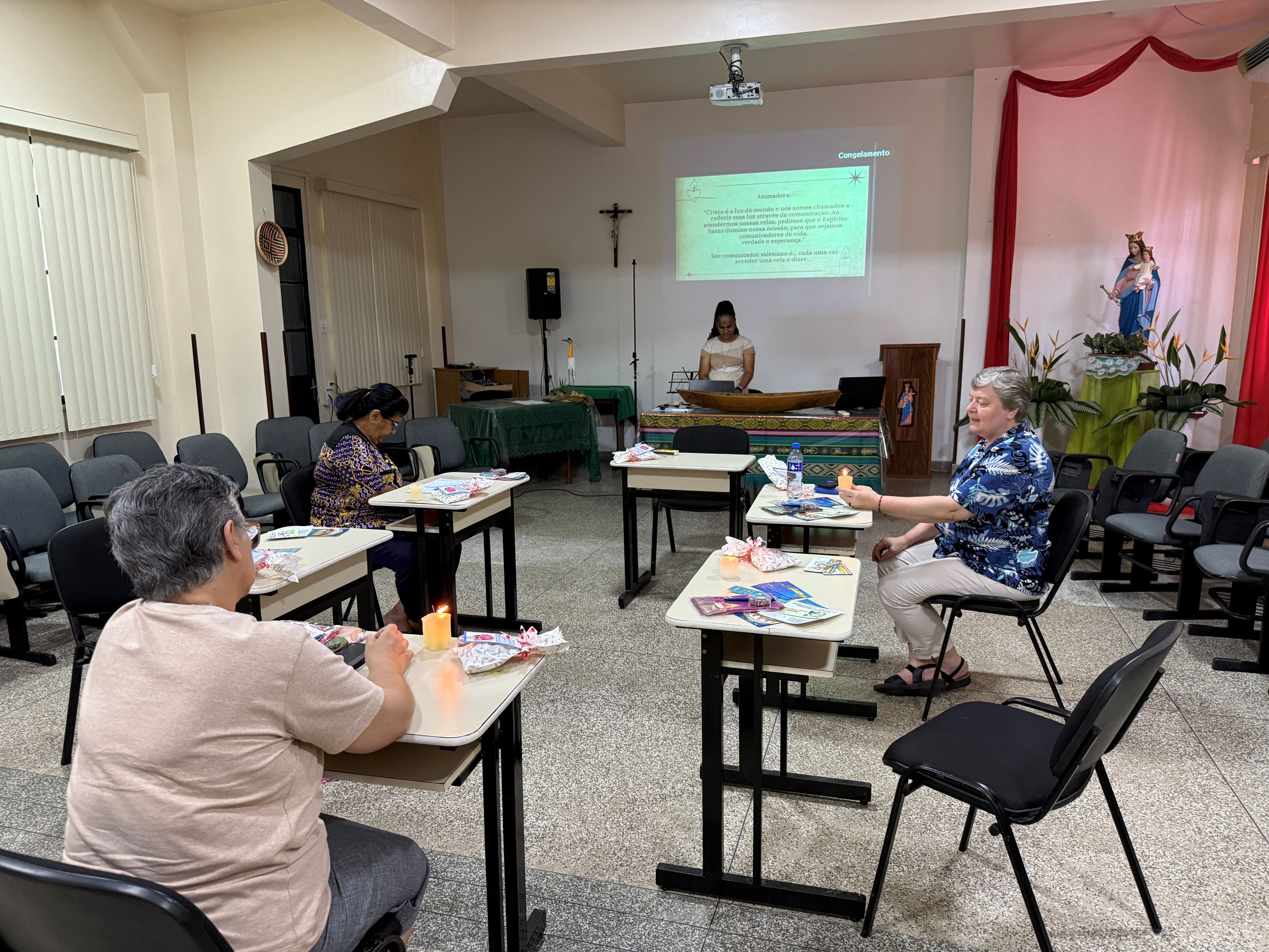 O grupo foi acolhido por Irmã Maria Carmelita Conceição, Inspetora da BRM e referente da Comunicação, que esteve presente e compartilhou sua experiência comunicacional, destacando a originalidade de Dom Bosco e seu empenho na comunicação conforme as categorias de sua época.