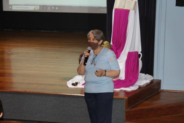 «Obrigada a todas, queridas Irmãs, pela grande participação na assembleia, por toda a preparação, pela contribuição de todas e todos os que estiveram presentes. Agradeço a grande participação das que estavam em casa com a oração. A sentimos mesmo, foi uma participação muito preciosa. Obrigada pelos muitos e lindos presentes que vieram de todas comunidades. Obrigada, queridas Irmãs, todas estão na minha oração e no coração. Quero-as muito, muito, muito. Um forte abraço a cada uma, com todo carinho.» Ir. Alaíde Deretti