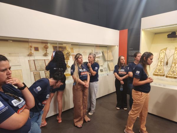 A jornada começou no Santuário Nacional de Nossa Senhora Aparecida, em Aparecida (SP), onde o grupo participou da missa às 16h e passou pela Porta Santa, momento especial de graça e renovação espiritual. Os educadores permaneceram no complexo da basílica durante todo o dia, das 10h às 18h, e vivenciaram momentos de oração diante da imagem de Nossa Senhora Aparecida, renovando seu compromisso com a missão educativa sob a proteção da Padroeira do Brasil.