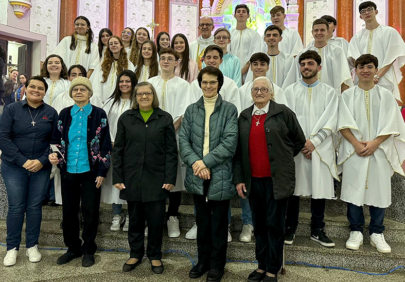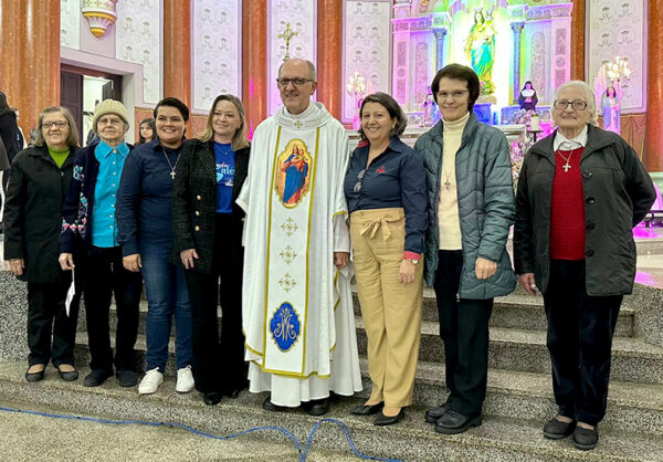 Este ano, o padre salesiano e Riosulense Renato dos Santos, com seu jeito alegre e carismático, presidiu a cerimônia, que contou com a presença de algumas Irmãs Filhas de Maria Auxiliadora que residem no IMA.