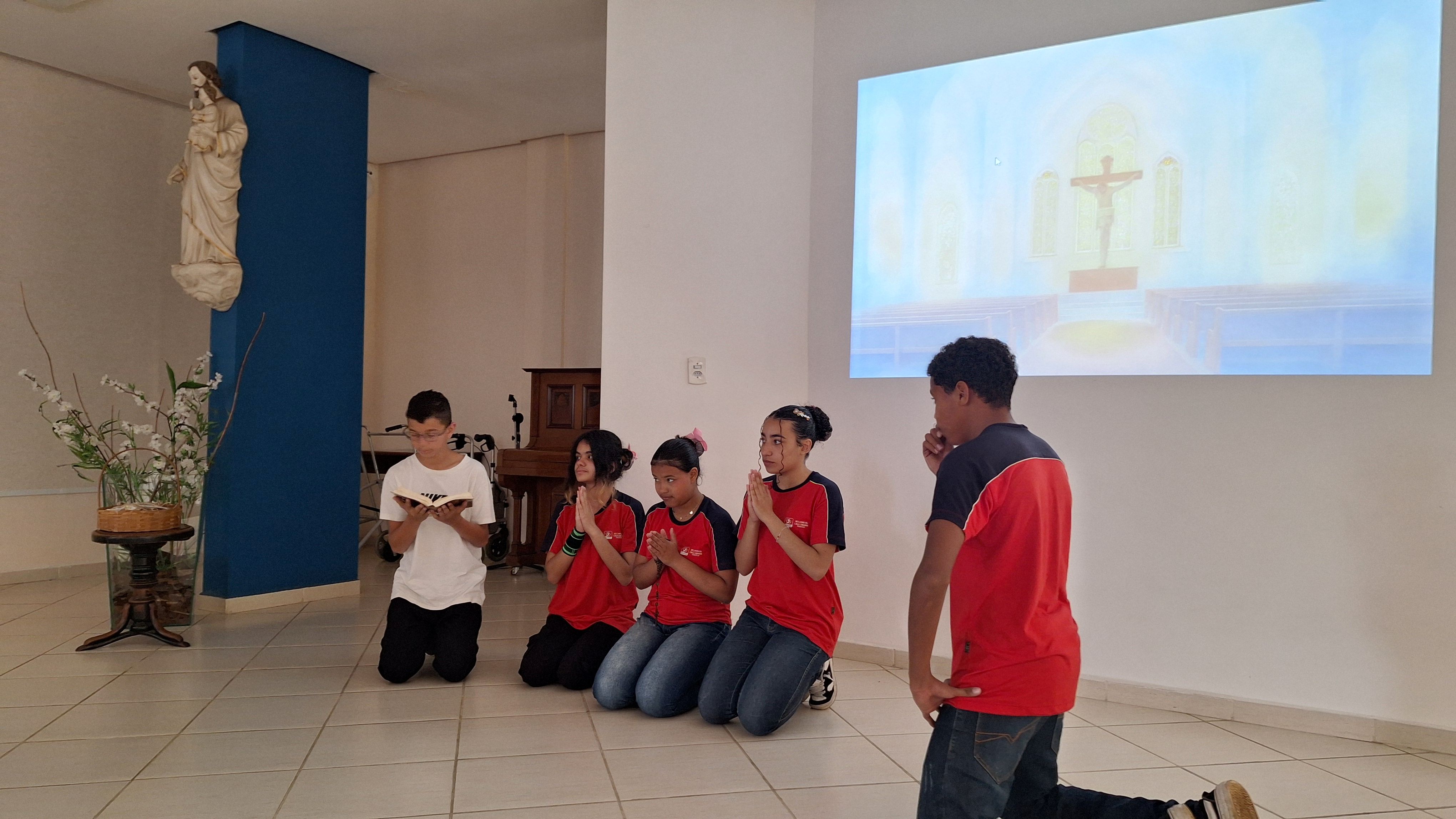 Com grande entusiasmo, os educandos encenaram a peça “Viajantes da Fé”, escrita pela educadora Márcia. A trama reflete a jornada de um adolescente diante dos desafios familiares, das amizades e das escolhas de vida, mostrando como o encontro com a Palavra de Deus pode renovar suas esperanças e redefinir seus objetivos. A apresentação foi calorosamente aplaudida pelos presentes.