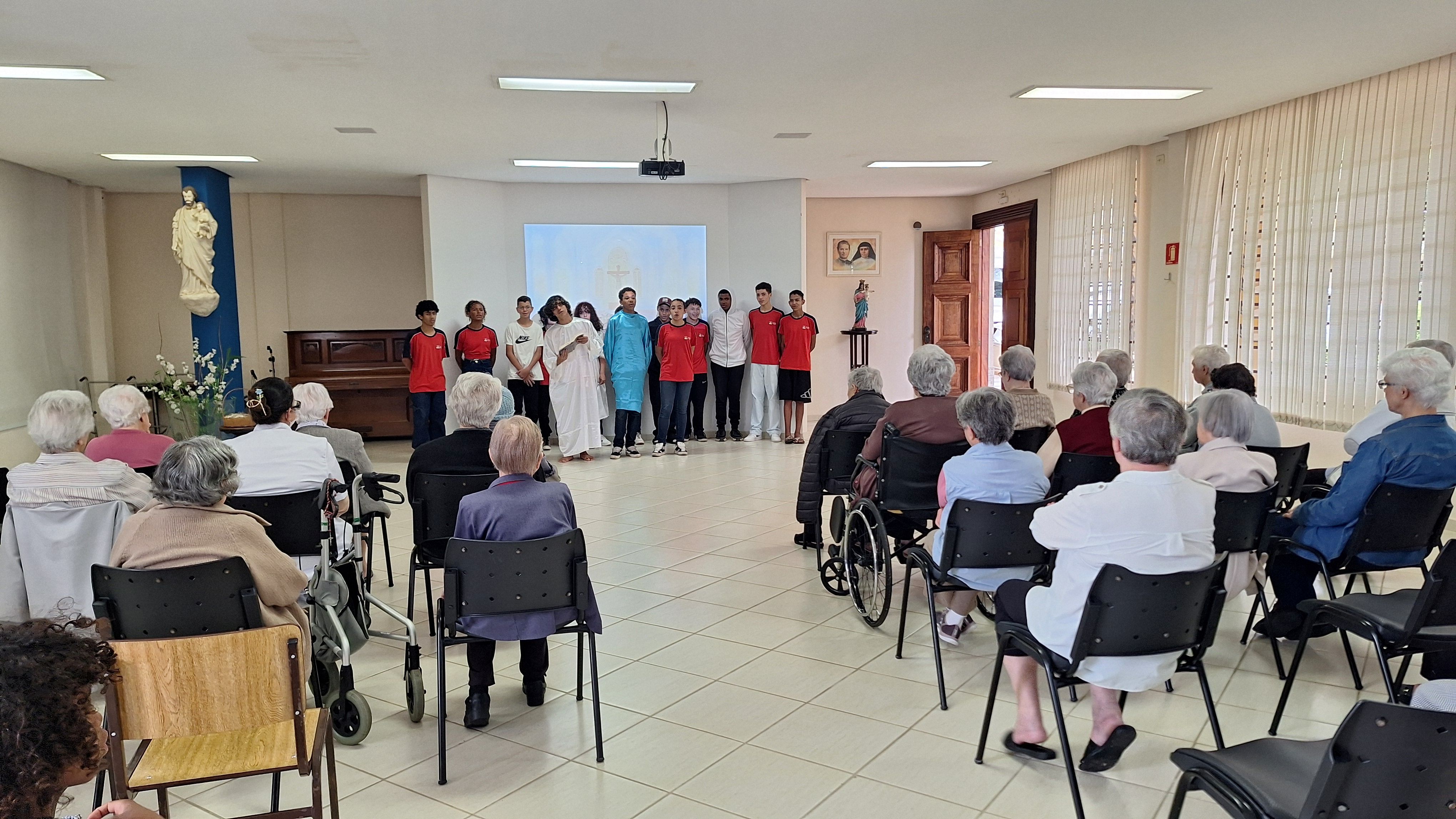 O programa também contou com uma animada dança e um show musical oferecido pelo educador Filipe, cuja criatividade e sensibilidade emocionaram as Irmãs. A celebração foi encerrada com a entrega de lembranças acompanhadas por mensagens de esperança, gesto que tocou profundamente os corações da comunidade religiosa.