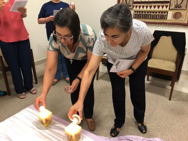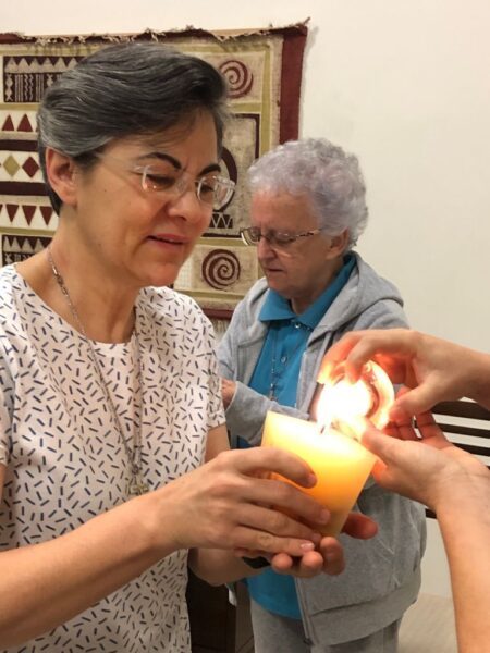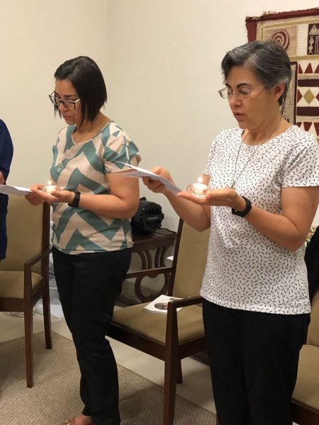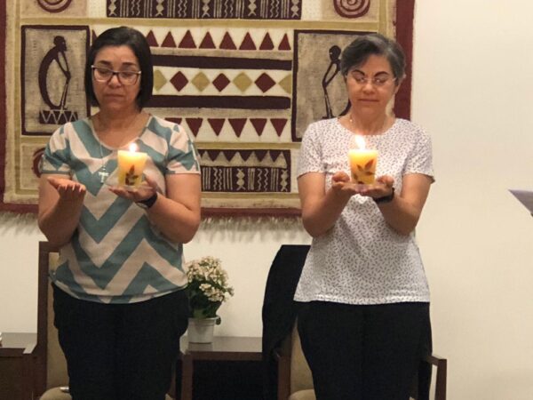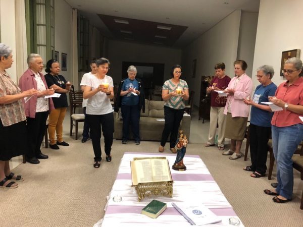 As Irmãs do Conselho juntamente com a comunidade da Casa Inspetorial fizeram a celebração de envio das Irmãs capitulares, Ir. Nilza Fátima de Moraes e Ir. Solange Sanches.