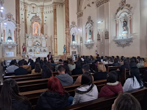 Para encerrar a jornada com reflexão e gratidão, todos se reuniram na capela do Colégio do Carmo para oração e compartilhamento de experiências. Como recordação deste dia transformador, cada educador(a) recebeu uma singela peça de madeira, cuidadosamente esculpida em formato de poço, máquina de costura, janela ou coração, simbolizando a missão de Madre Mazzarello, acompanhada de um cartão que expressava gratidão pelos momentos vividos em conjunto.