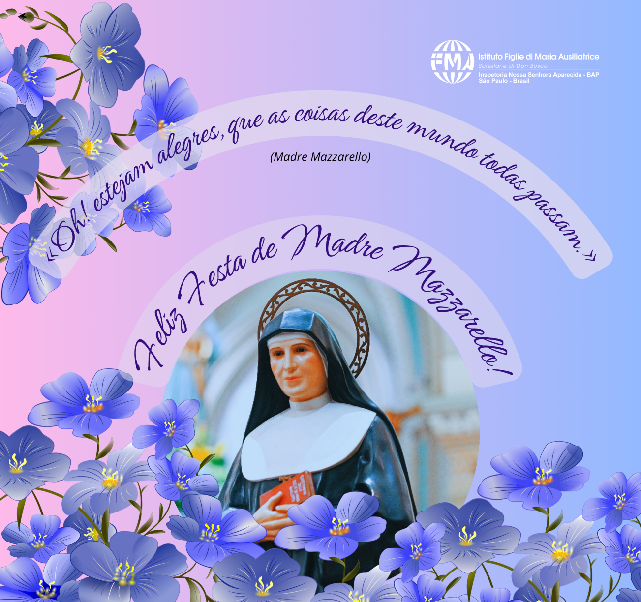Desejo que a santidade de Madre Mazzarello inspire nossa vida e missão para que sejamos realmente Comunidades geradoras de vida, pessoas de esperança! A humildade, a dedicação e o amor de nossa Main por Jesus, nos motivem a seguir com muito entusiasmo, com fé e generosidade na concretização do Carisma em nosso cotidiano. Confiemos aos seus cuidados a nossa missão de educar e evangelizar as novas gerações, com alegria e compromisso, apoiados em valores humanos e cristãos. Que esta festa seja um momento de graça, de verdadeira comunhão e renovação espiritual para cada um de nós e para todos os que compartilham conosco desta maravilhosa herança carismática!