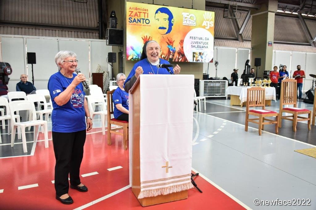 E 2022 trouxe além do retorno presencial, também as celebrações do Instituto das Filhas de Maria Auxiliadora, que completou 150 anos de fundação e 130 de presença no Brasil, contando com a presença pra lá de especial da Superiora Geral emérita, Madre Yvonne Reungoat. Sempre sorridente e cheia de muitos abraços calorosos para dar, Madre Yvonne encantou com suas palavras acolhedoras em meio a seu sotaque marcante, arriscando ainda um gentil e carinhoso português em terras brasileiras. E se deixou também encantar pela recepção dos milhares de jovens ali reunidos e atentos aos seus sorrisos radiantes e palavras sempre maternais. Uma alegria que se traduz em delicadeza providencial para tal ocasião, um verdadeiro presente de Deus que só fez abrilhantar o nosso dia!