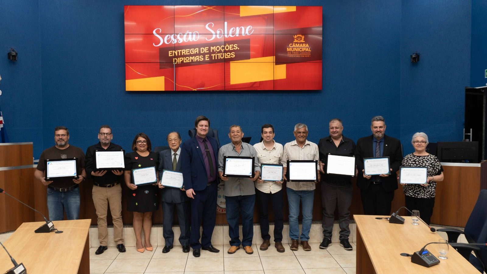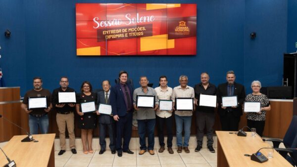 Auditório da Câmara reuniu colaboradores e convidados, juntamente com demais homenageados que também receberam moções e títulos.