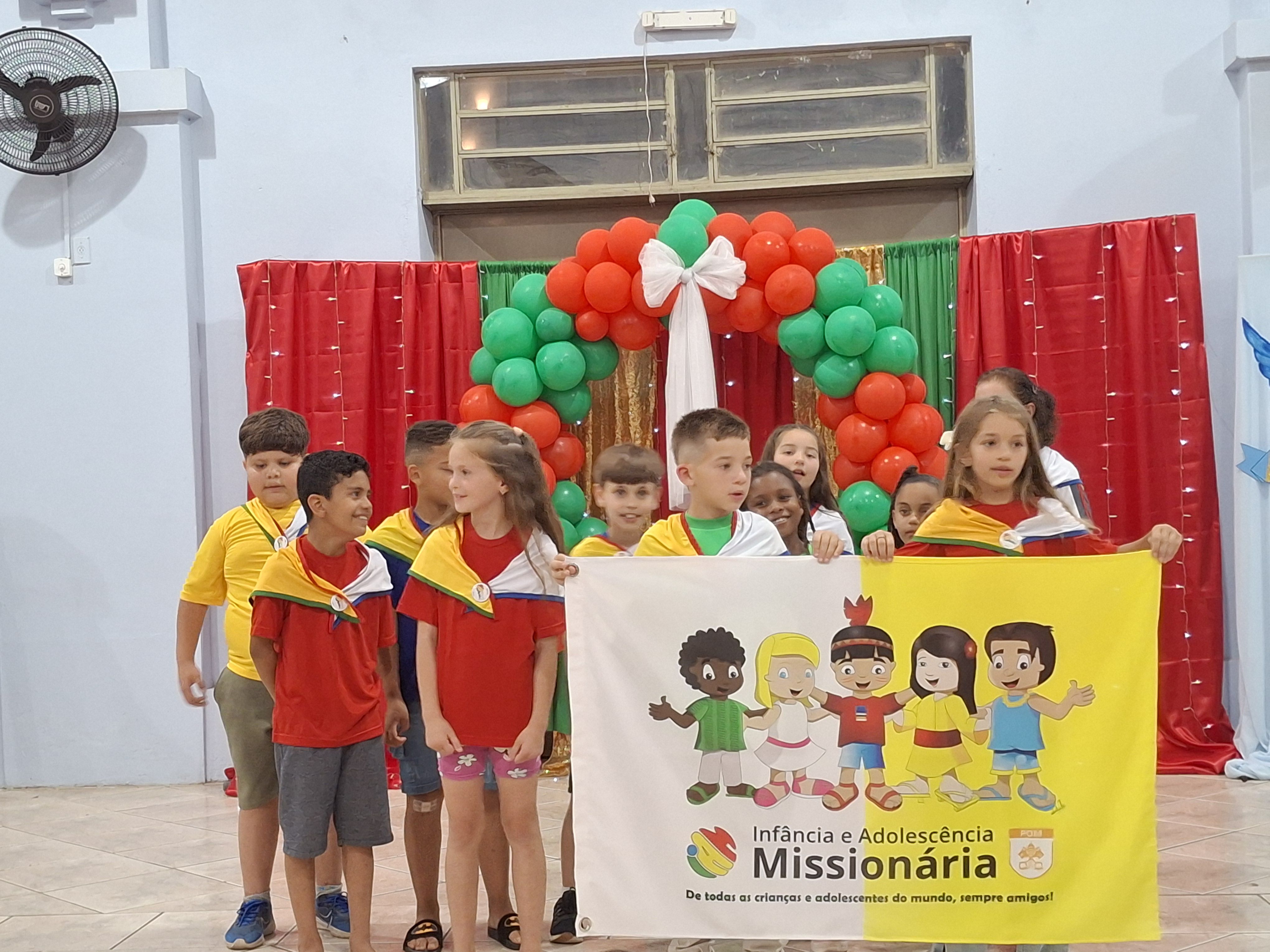 O educador Guilherme, do curso de música também preparou dois corais, sendo um com os educandos do turno da manhã e outro com os educandos do turno da tarde. E o grupo da Infância Missionária cantou o próprio hino e a música Deus é bonito, do Padre Zezinho, mostrando a missão que eles têm “Criança ajuda e evangeliza criança”.