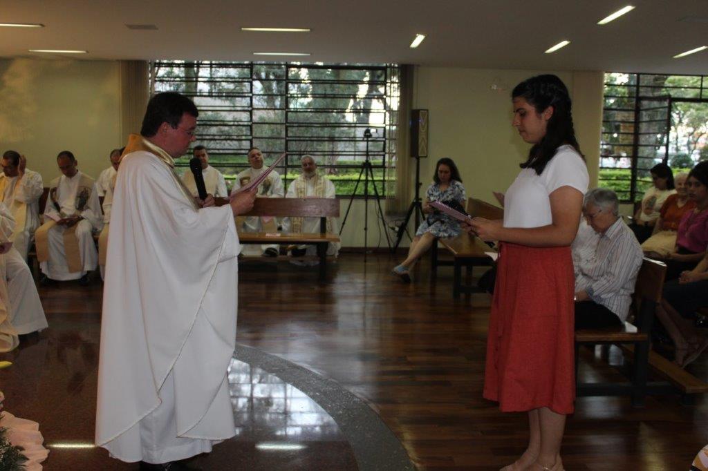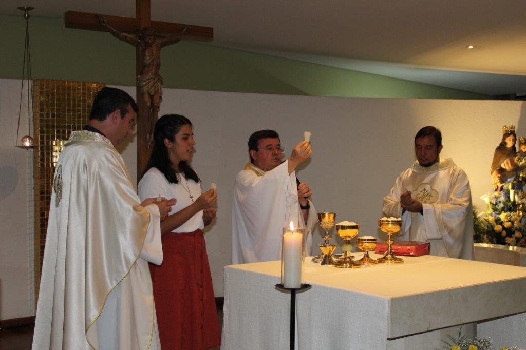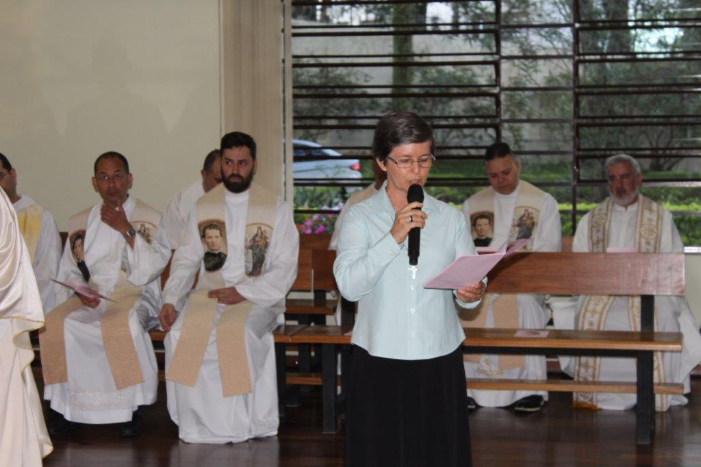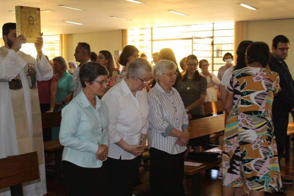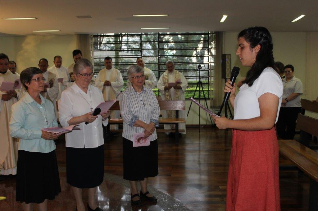 Para concluir a Celebração, Irmã Alaíde Deretti fez os agradecimentos e apresentou para a comunidade reunida as FMA junioristas que no dia anterior renovaram sua Profissão Religiosa, as jovens que estão iniciando ou continuando o Noviciado e também um grupo de jovens que está no período de acompanhamento e discernimento vocacional. Também os jovens Salesianos em período de formação foram apresentados à comunidade.