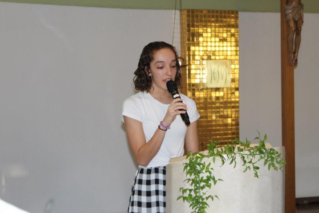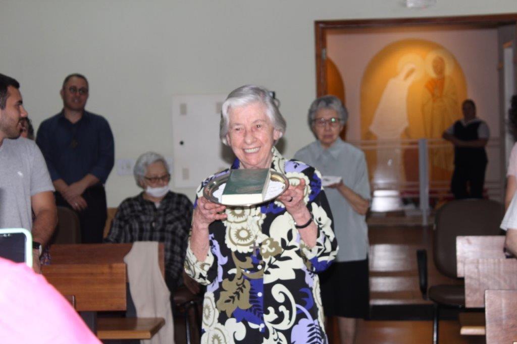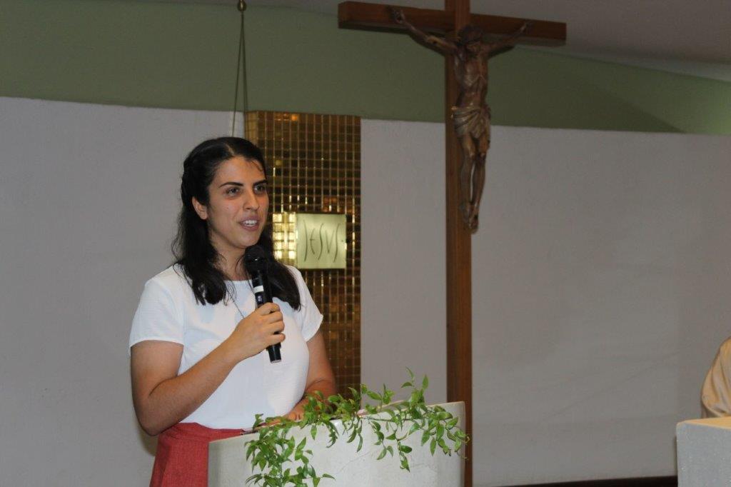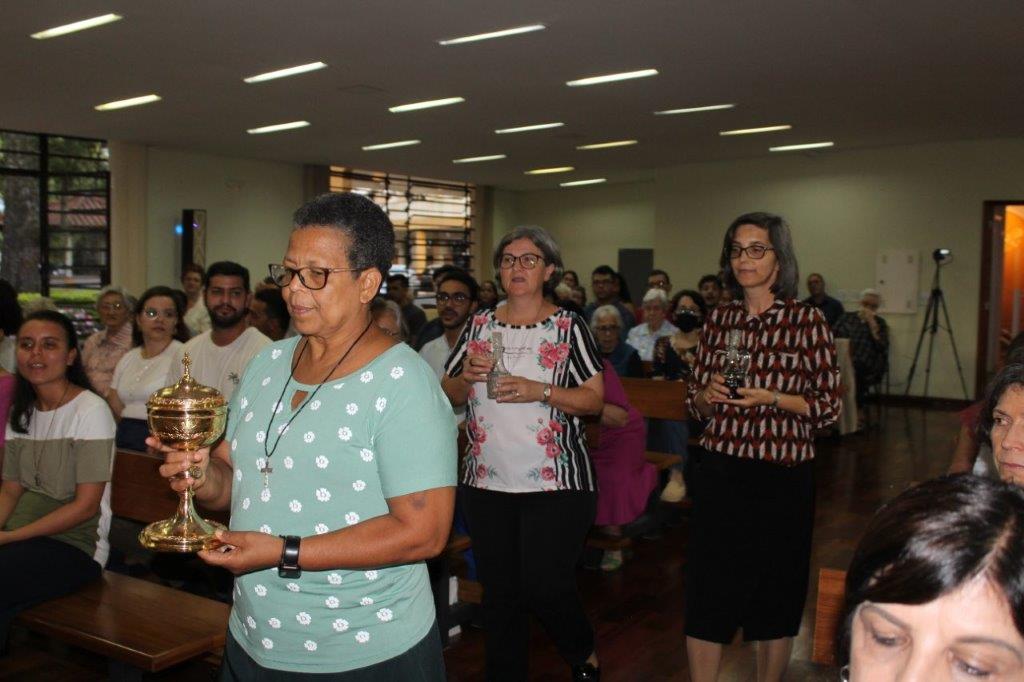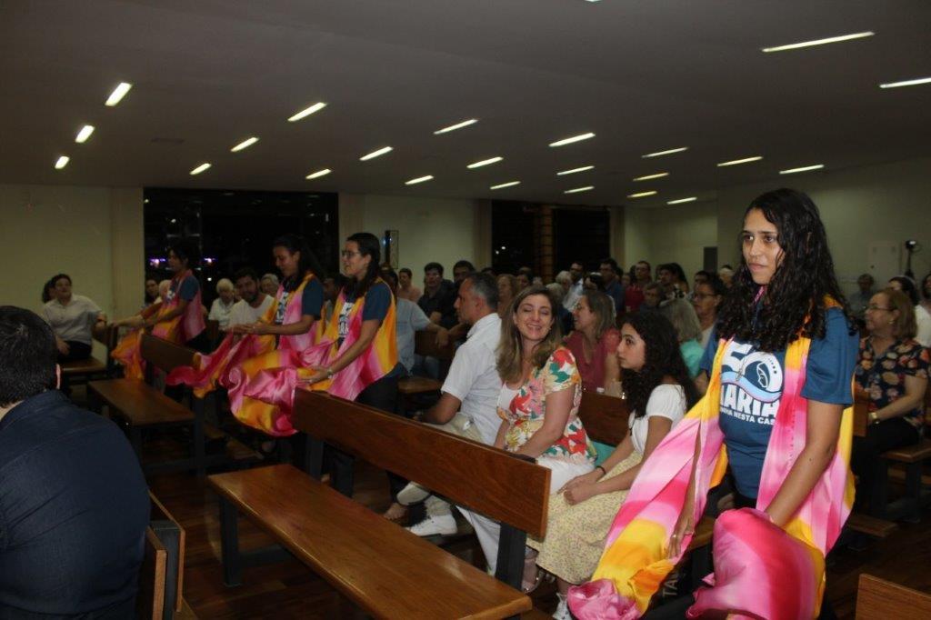 Para concluir a Celebração, Irmã Alaíde Deretti fez os agradecimentos e apresentou para a comunidade reunida as FMA junioristas que no dia anterior renovaram sua Profissão Religiosa, as jovens que estão iniciando ou continuando o Noviciado e também um grupo de jovens que está no período de acompanhamento e discernimento vocacional. Também os jovens Salesianos em período de formação foram apresentados à comunidade.