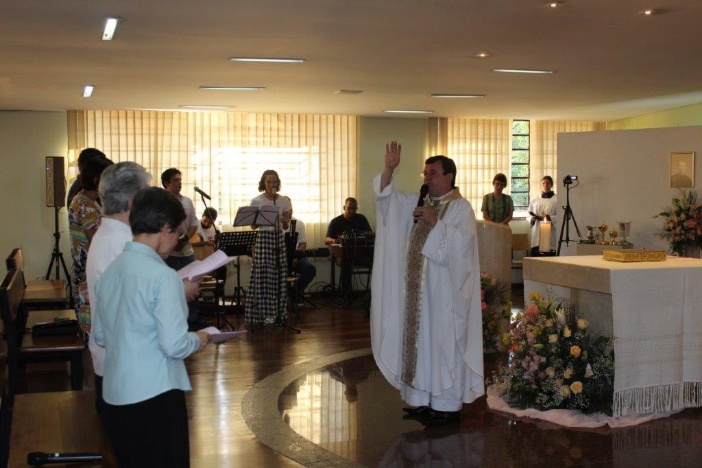 Depois dos Exercícios Espirituais realizados no Centro de Espiritualidade Flos Carmeli, de Mairiporã, um grupo de Filhas de Maria Auxiliadora (FMA) e jovens em formação, juntamente com membros da Família Salesiana, se reuniram no dia 14 de janeiro, às 18h, para participar da Celebração Eucarística, na capela da Casa Santa Teresinha (Lapa – SP).