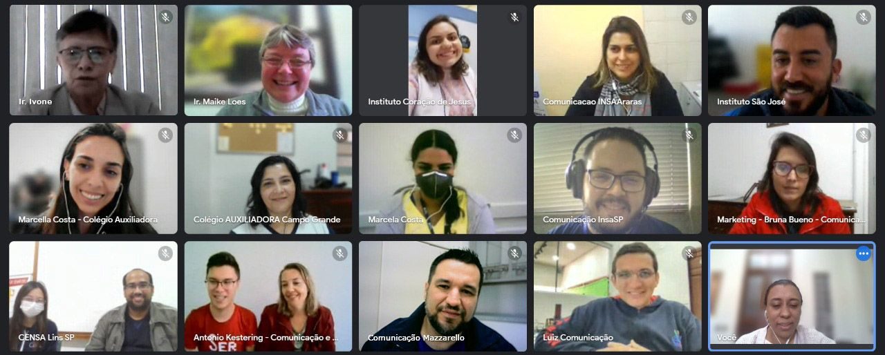 No dia 28 de junho de 2022 aconteceu mais uma reunião on-line dos coordenadores de comunicação das Escolas da Inspetoria Nossa Senhora Aparecida (BAP), com sede em São Paulo (SP). O encontro foi organizado pela equipe inspetorial de comunicação e acompanhado por Irmã Ivone Marcuzo, Conselheira inspetorial referente para o Âmbito da Comunicação social.