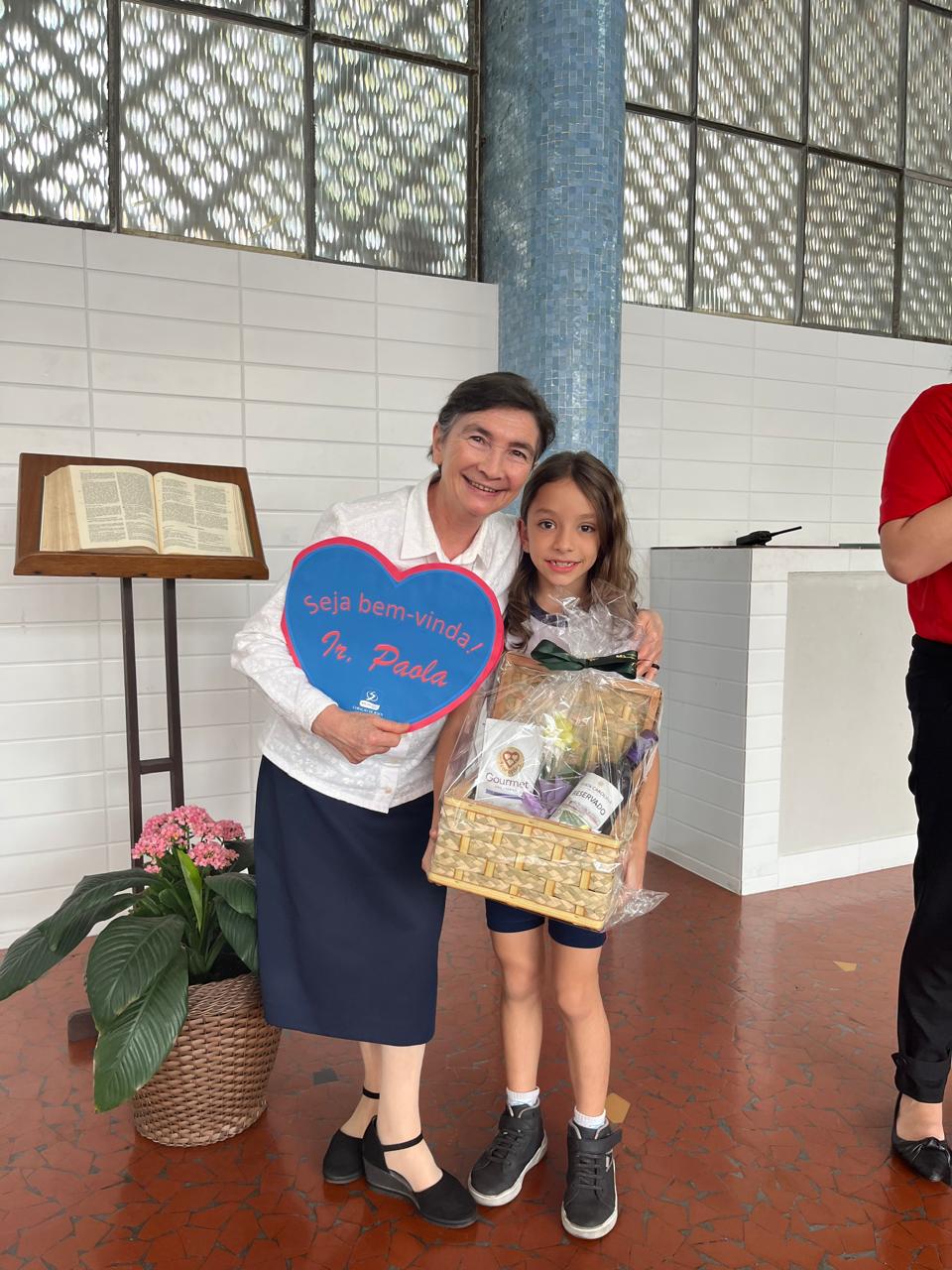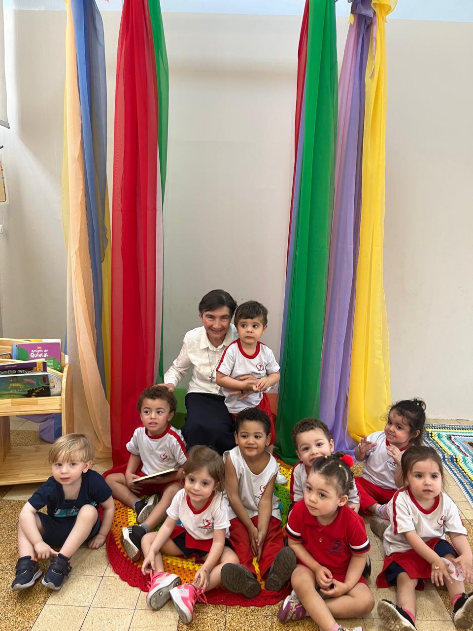 No período da tarde, Irmã Paola foi calorosamente acolhida pelas crianças da Educação Infantil e Ensino Fundamental - Anos Iniciais com a apresentação musical: “Que alegria, você chegou... Seja bem-vinda, quem te acolhe é o Coração”. Neste Boa-Tarde especial, Irmã Paola cantou com as crianças e ouviu as razões que as fazem gostar tanto da escola! Foi visível o quanto o seu coração se alegrou com este encontro!