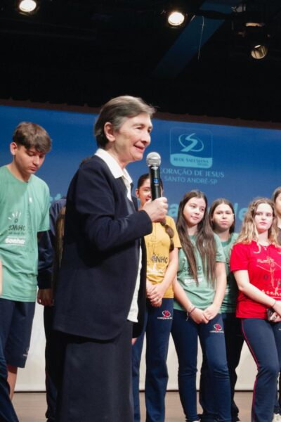 Uma das atrações do dia foi a estreia do podcast “Vozes do Coração”, no qual Irmã Paola foi a primeira entrevistada. Em um bate-papo com Jacks Ramos, coordenador de pastoral, e com as estudantes Manuela, do 1º ano do Ensino Médio, e Rafaela, do 5º ano, ela compartilhou detalhes sobre sua vocação, os objetivos de sua visita, desafios enfrentados e finalizou contando sobre o que sonha para as juventudes.