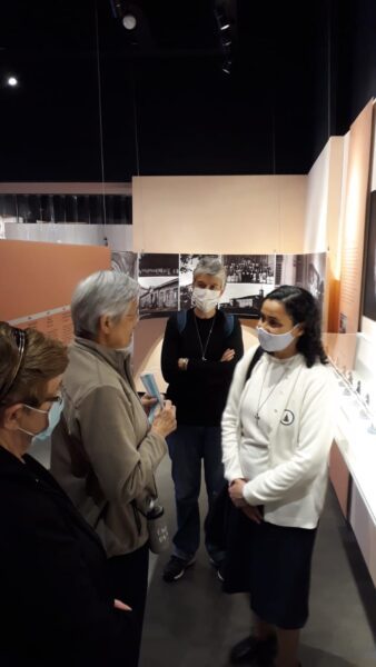 Acompanhada pela Ir. Dulce Hirata, responsável pelo acolhimento dos grupos, Ir. Adriana conheceu a gruta de Nossa Senhora de Lourdes, em seguida foi apresentada a toda infraestrutura do Memorial, com sua trajetória educativo-missionária por meio de um acervo rico em detalhes e registra sensorialmente nossa história nos aspectos afetivo, cultural e religioso.