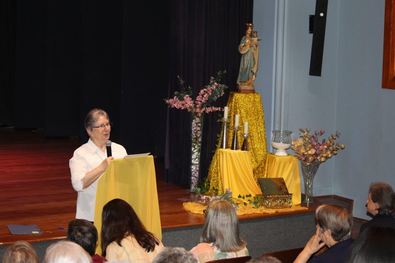 Na sessão de abertura, Ir. Alaíde Deretti – Inspetora da BAP – expressou o grande desejo de que cresça a comunhão na Inspetoria, pois «a beleza mora nas cores! Somos muitas e diversas, porém, formamos uma só Inspetoria! Somos um mosaico em construção, oferecendo espaço para a integração das nossas diferenças! O fato de estarmos aqui indica o quanto é importante insistirmos na escuta e no diálogo em nossa caminhada para podermos avaliar e decidir juntas a direção, a continuidade do nosso percurso, e assim, fortalecer o conhecimento recíproco e a partilha da vida e da missão, com maior sintonia e comunhão». A Inspetora da BAP abriu os trabalhos da 2ª Assembleia presencial, ajudando as Irmãs a vislumbrarem um novo horizonte de esperança, em espírito de sinodalidade e comunhão.