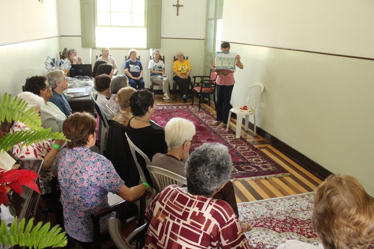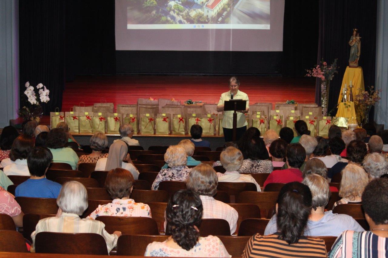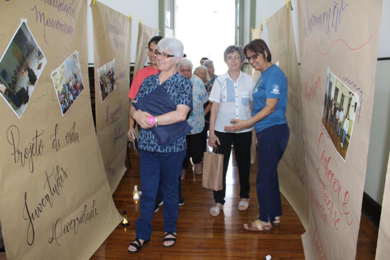 Outros dois momentos importantes do primeiro dia, foram a Celebração Eucarística em ação de graças pela vida e missão da Comunidade inspetorial e pelas Jubilandas, assim como um momento de encontro e distensão organizado pelo Conselho Inspetorial que culminou com a visita à “Sala dos Presentes”, preparada pelas comunidades que ofereceram como gratidão à Inspetora diversos e lindos trabalhos manuais, realizados pelas Irmãs ao longo do ano.