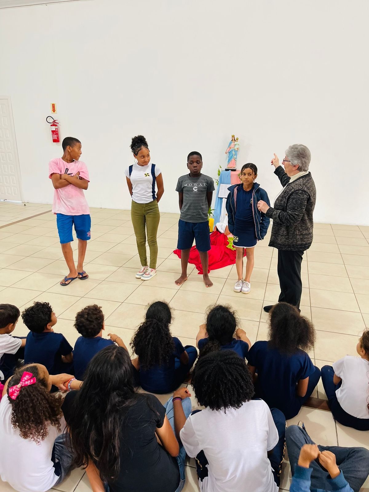 Em seguida, deu-se continuidade ao “Bom dia” e “Boa tarde” para todas as crianças e adolescentes, dos períodos matutino e vespertino. Para concluir este tempo de Salesianidade, foi realizada uma reflexão com as lideranças juvenis, incentivando o compromisso de todos.