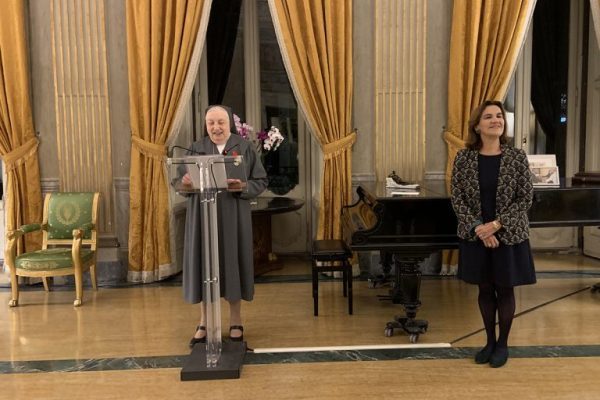 O prêmio foi entregue por Sua Excelência a Embaixadora da França junto à Santa Sé , Sra. Elisabeth Beton Delègue, que expressou sua alegria e satisfação em expressar a gratidão e homenagem da nação francesa a Madre Yvonne Reungoat, por seu empenho e pela missão que você realizar ao serviço da educação dos jovens mais pobres de muitos países, com todas as Irmãs do Instituto das Filhas de Maria Auxiliadora, Salesianas de Dom Bosco . Disse estar particularmente feliz porque teve a oportunidade de conhecer as Filhas de Maria Auxiliadora e sua missão durante sua longa carreira diplomática, em particular no Haiti e Madagascar.