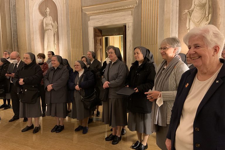 Madre Yvonne Reungoat, assim se dirigiu ao público: « R conquistou a si mesmo como embaixador por esta grande e delicada atenção que revela sua sensibilidade pela promoção, valorização das mulheres e das mulheres consagradas, reconhecendo seu lugar específico na sociedade. Desejo dedicar esta condecoração a todas as mulheres consagradas do mundo que, entregando a sua vida a Deus, a colocam ao serviço dos mais pobres, dos mais desfavorecidos, dos rejeitados. Muitas vezes estão presentes nos cantos mais isolados da terra, onde a pobreza em todas as suas formas é extrema, onde a violência assola e mata, todos os dias, muitas mulheres e crianças inocentes, onde ousar manifestar a fé é um risco de vida. Eles optam por permanecer entre seus povos, compartilhando seu sofrimento, sendo uma presença simples que se torna proximidade, tentando acender uma pequena luz que sustenta a esperança quando a escuridão parece invadir o horizonte. O amor, expresso em gestos quotidianos de proximidade, escuta, partilha, é fonte de vida nova ”.