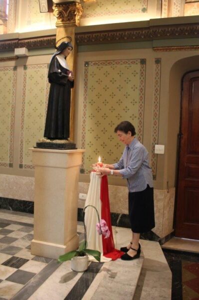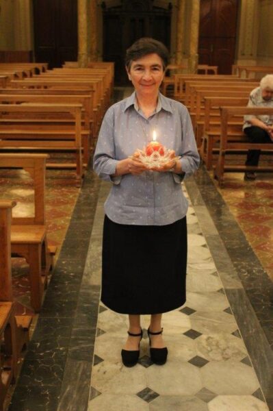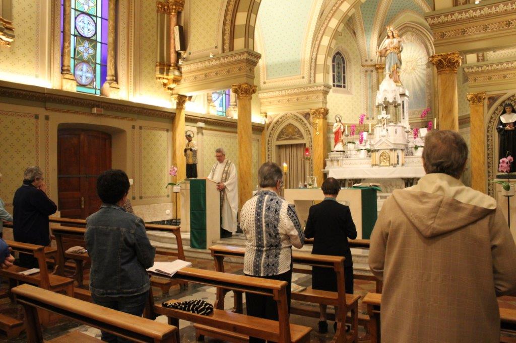 A conclusão do dia não podia ser diferente. Às 17h30, houve a Celebração Eucarística na capela do Colégio de Santa Inês, presidida pelo Salesiano Padre Camilo da Silva. A diretora da comunidade, Irmã Helena Gesser, acolheu Irmã Paola em nome de todas as Irmãs, dizendo: «No Evangelho de hoje, Jesus é o vinho novo, a novidade de Deus na história. A sua presença, Irmã Paola, é também hoje, para nós, vinho novo que vem dar novo sabor à nossa vida e à nossa missão e a capacidade de viver a imensa alegria nascida da centralidade em Jesus Cristo, o verdadeiro vinho novo. Por isso, com Cristo, agradecemos a Deus a sua presença e o seu testemunho de mulher feliz e realizada, que tudo deu ao Senhor e que partilha o vinho novo com quem está ao seu redor».