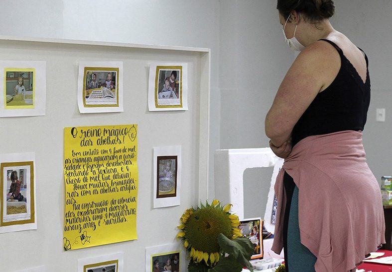 No local, foi possível observar muitos projetos inovadores e a multiplicidade de linguagens aplicadas pelas professoras com os pequenos alunos. A abordagem educativa de Reggio Emilia, que projeta diferentes contextos para o desenvolvimento da autonomia e criatividade de cada criança, ficou evidente nos vídeos, fotos, diálogos e registros das atividades expostas.