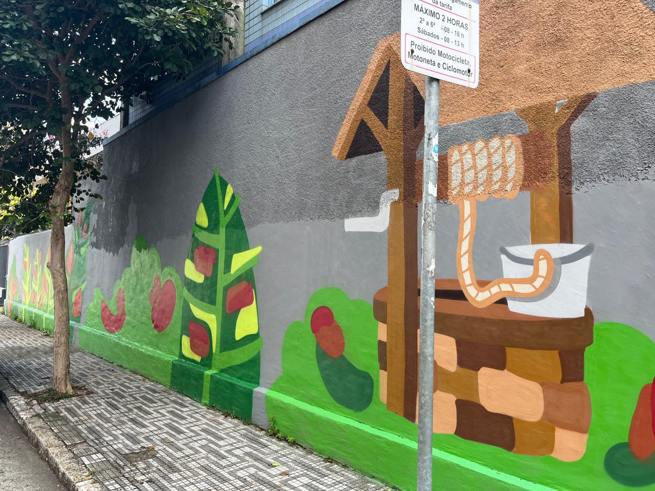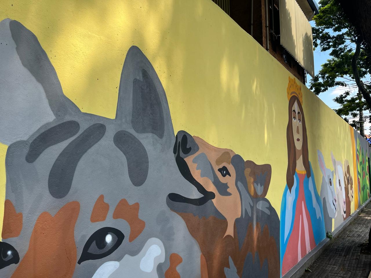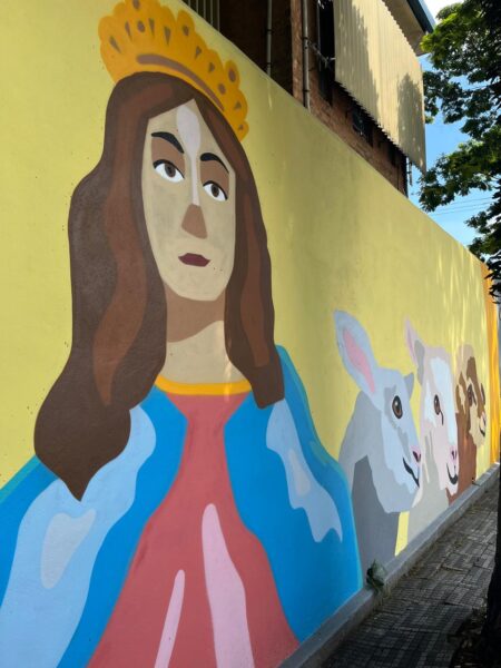 Mural artístico transforma muros do Instituto Coração de Jesus em homenagem a Dom Bosco e Madre Mazzarello