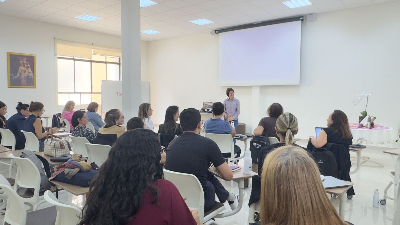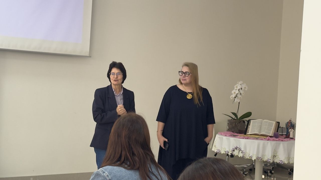 A programação teve início às 8h30, com acolhida e café da manhã, promovendo um ambiente de integração entre os participantes. Às 9h, a diretora-presidente da AEISSP, Ir. Adair Sberga, conduziu o momento de oração inicial e realizou a abertura oficial do encontro com uma mensagem de boas-vindas.