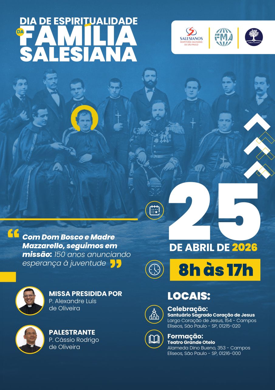 O evento acontecerá no sábado, 25 de abril de 2026, no Liceu Coração de Jesus (Alameda Dino Bueno, 353, São Paulo), e vai reunir os participantes para um dia de renovação espiritual e comunhão, com o tema «Com Dom Bosco e Madre Mazzarello, seguimos em missão: 150 anos anunciando esperança à juventude».