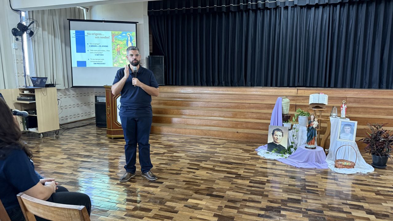 Em seguida, no Salão de Atos da escola, o convidado especial Padre Leandro Brum Pinheiro (Salesiano de Dom Bosco) conduziu um momento formativo com o tema «Salesianidade: para viver o Oratório (Sistema Preventivo)». Durante sua explanação, destacou o Sistema Preventivo como uma grande ferramenta da pedagogia salesiana, criada por Dom Bosco. Mais do que um método, trata-se de uma metodologia que contempla integralmente o currículo educativo, favorecendo o acompanhamento dos processos de desenvolvimento dos jovens e contribuindo para a formação de «bons cristãos e honestos cidadãos».