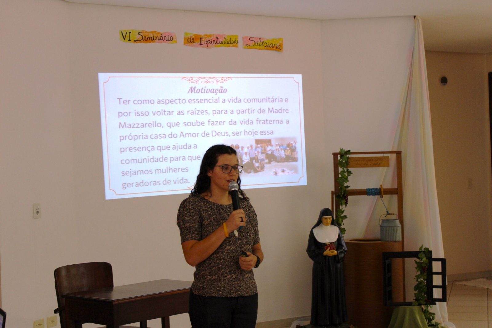 O Seminário de Espiritualidade Salesiana está em sua 6ª edição e tem como objetivo o aprofundamento do conteúdo das aulas de Salesianidade (Itinerário Espiritual de Dom Bosco e Madre Mazzarello), orientadas por Irmã Vani Moreira, da Inspetoria Madre Mazzarello (BMM), de Belo Horizonte.