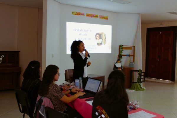 «Madre Mazzarello e a feminilidade preventiva» - Thalita (Inspetoria Nossa Senhora da Amazônia - BRM), noviça do 2° ano: «Escrever esse trabalho, além de confrontar ideias, me ajudou a firmar convicções. Reconheço esse tempo de formação como dom, e agradeço a oportunidade de rezar a vida e o testemunho de Mazzarello no seu estilo de preventividade, mulher disposta a “visitar” as jovens a ela confiadas, ser próxima e comunicar “a verdadeira alegria”. Aspecto que me convida a retomar o projeto pessoal de vida, reaprender alguns pontos de vista e aprender o novo jeito de ser presença hoje nos pátios reais e virtuais».