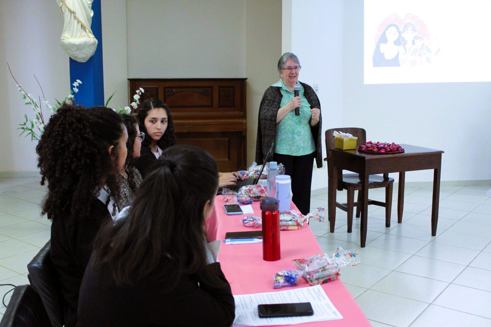 Acompanhadas pela professora de Salesianidade, Irmã Vani, e também pela assistente, Irmã Claudia Ribeiro, na edição deste ano cada noviça teve 20 minutos para apresentar o trabalho de aprofundamento. A atividade foi realizada no Salão São José, na vizinha comunidade Santa Teresinha, na Lapa, e contou com a participação de Irmã Alaíde Deretti, Inspetora da Inspetoria Nossa Senhora Aparecida (BAP), Dom Antônio de Assis Ribeiro, Bispo salesiano da Arquidiocese de Belém do Pará, o salesiano Antônio Veiga Neto, estudante de Teologia, e diversas Irmãs da Casa Santa Teresinha e da Casa Inspetorial.