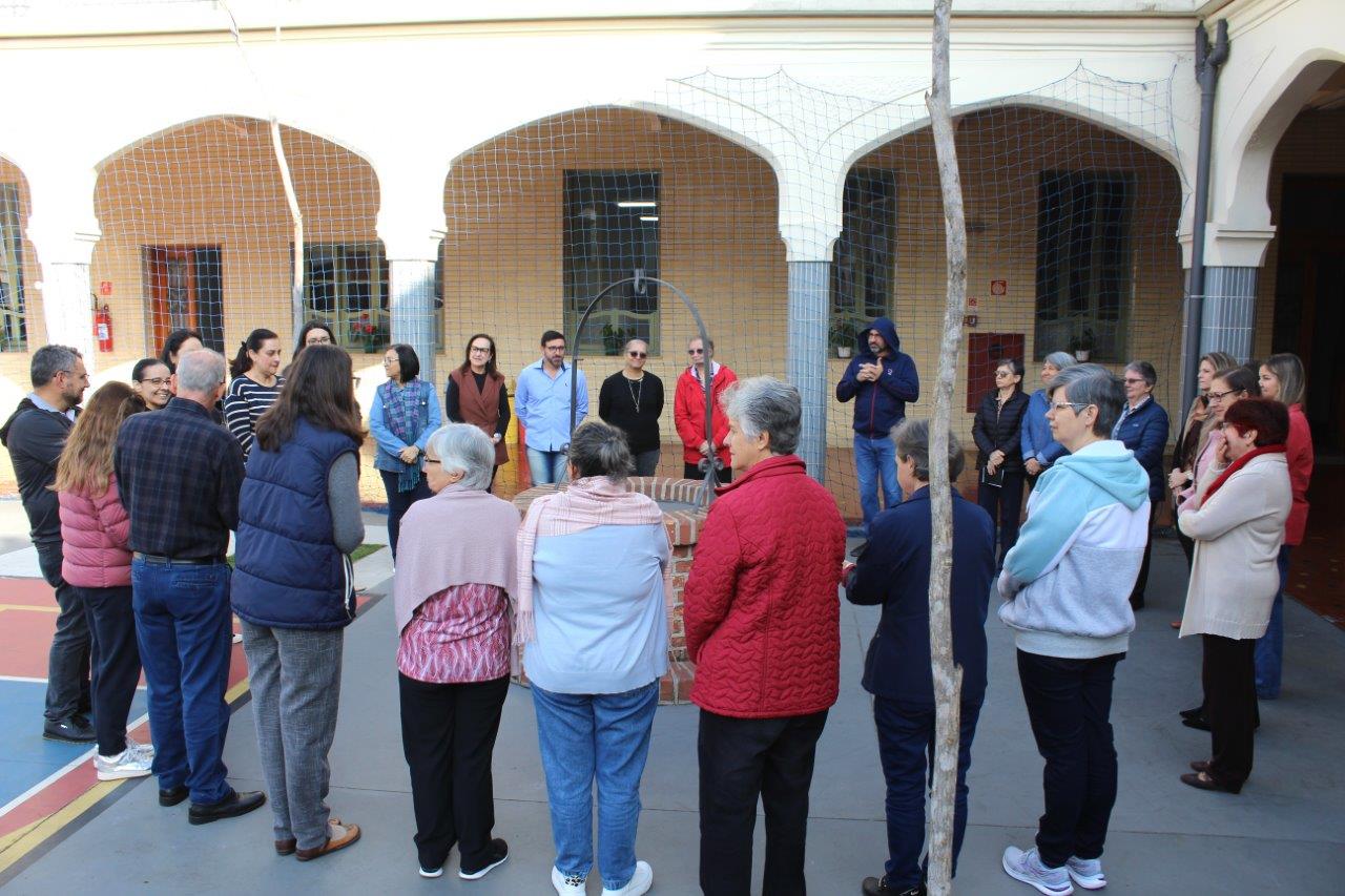 Antes de o grupo reencontrar-se na sala de trabalhos, os participantes se reuniram em torno do “Poço de Mornese” localizado no pátio do Colégio de Santa Inês. Dali, em peregrinação, foram para outro ambiente, motivados pela Palavra de Deus que é luz que ilumina a caminhada. Conduzido por Irmã Alaíde e também pela Vice-Inspetora, Irmã Ivone Ranghetti, o grupo se dirigiu à sala de trabalhos onde os participantes foram surpreendidos por um ambiente envolvente e por “Alice no país das maravilhas”, acompanhada pelo Coelho e seu relógio, sempre atrasado e marcando bem os tempos das atividades que foram desenvolvidas.