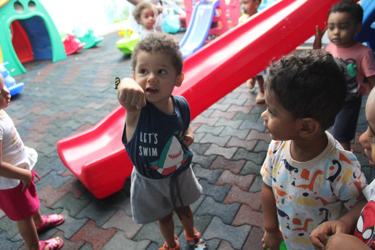 Em uma manhã de segunda-feira, durante o horário destinado ao parque, um espaço de descobertas, investigações e muitas explorações, as crianças chegaram animadas, prontas para mais uma aventura ao ar livre. Logo ao adentrarem o espaço, foram surpreendidas por uma linda borboleta, que imediatamente capturou a atenção e despertou o encantamento de todos. Era visível o brilho nos olhos dos pequenos diante daquela visita especial da natureza.
