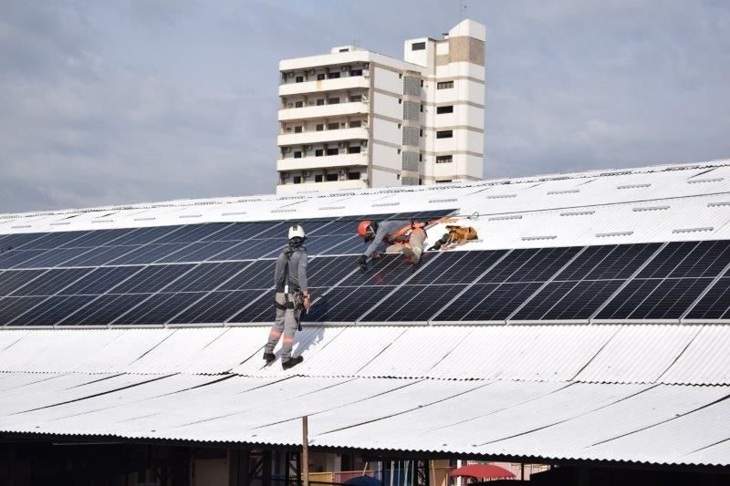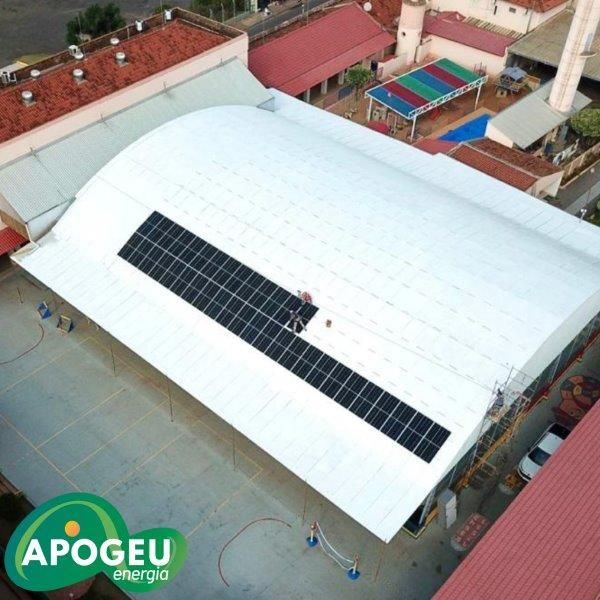 Na quadra de esportes, há dias os operários estão trabalhando para instalar as placas fotovoltaicas. O projeto de energia fotovoltaica, pensado e provisionado há mais tempo, está em fase de instalação e fornecerá energia limpa para toda Escola.
