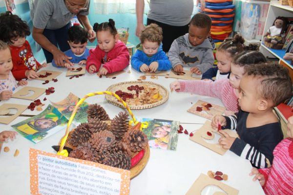 Pequenos artistas do CEI Pingo de Gente se inspiram no pintor Fábio Gomes Trindade