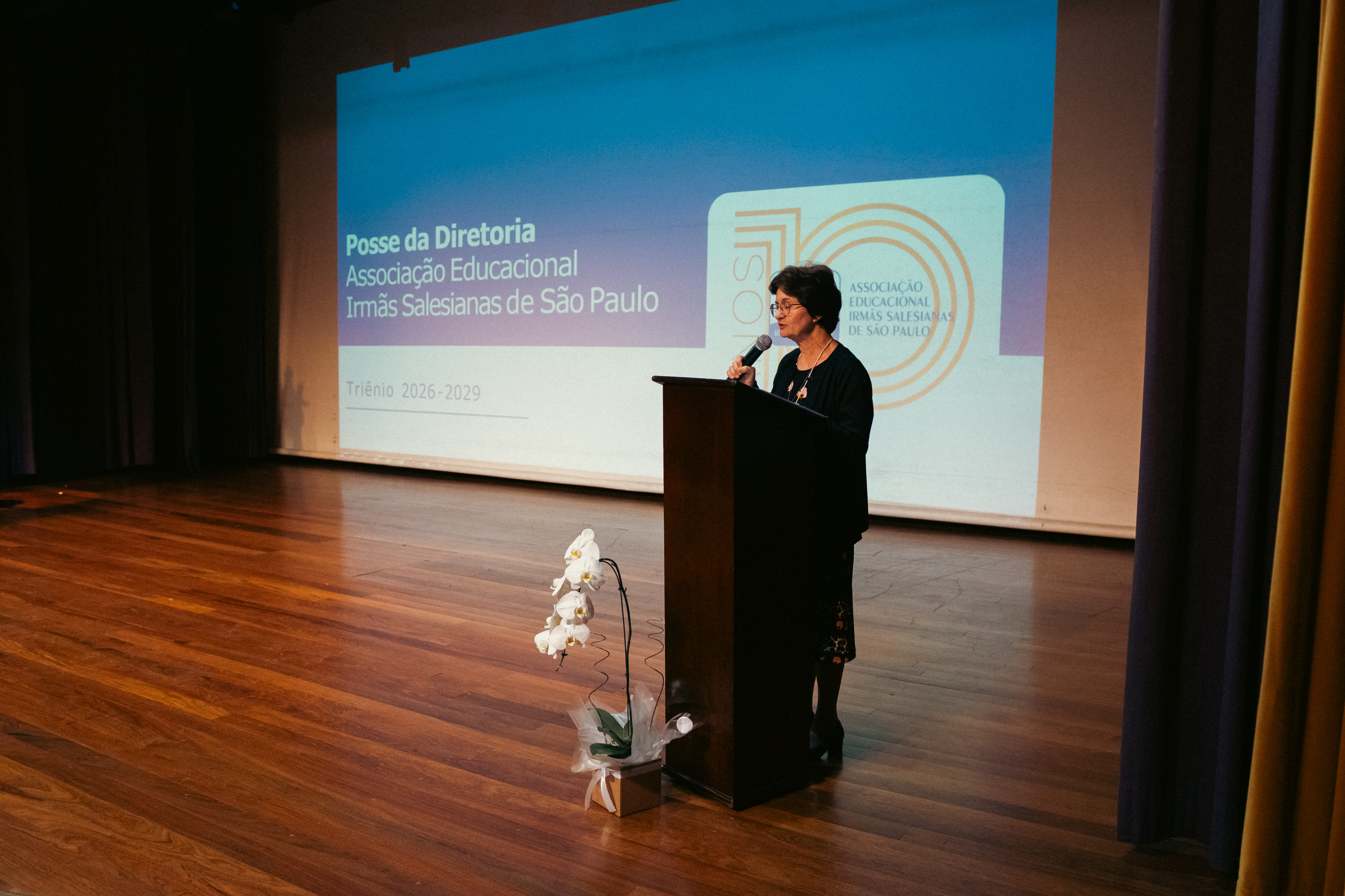 Em seu pronunciamento, Irmã Teresa Cristina relembrou a trajetória da associação e destacou que sua origem está ligada a uma reflexão profunda sobre a partilha de bens e serviços, proposta no Conselho Inspetorial, em um período de reorganização da inspetoria. Segundo ela, o estudo sobre a sustentabilidade das escolas e das obras sociais abriu caminho para uma decisão estruturante: a organização das unidades sob um único CNPJ. “Assim nasceu a nossa Associação Educacional das Irmãs Salesianas de São Paulo”, afirmou.