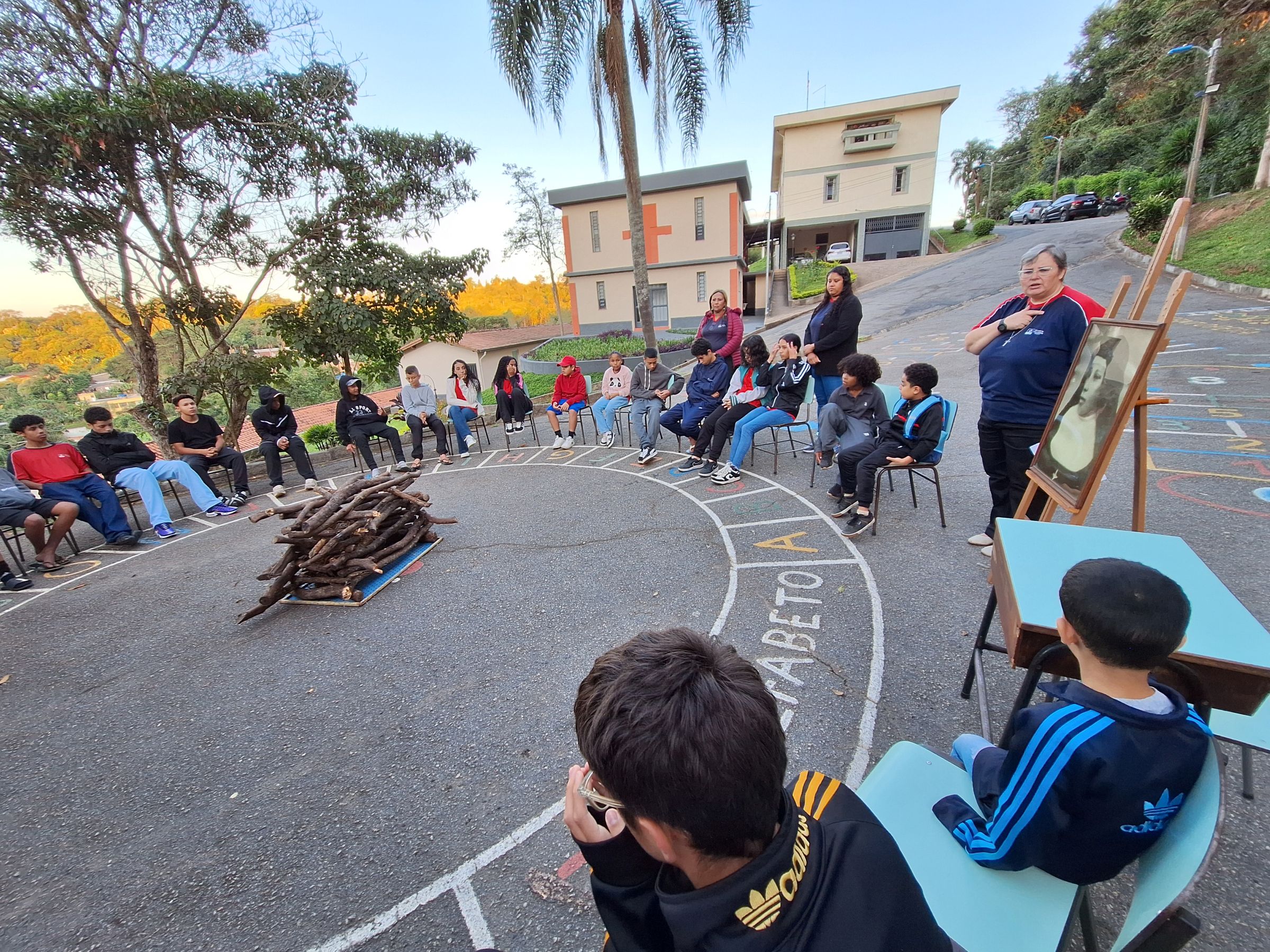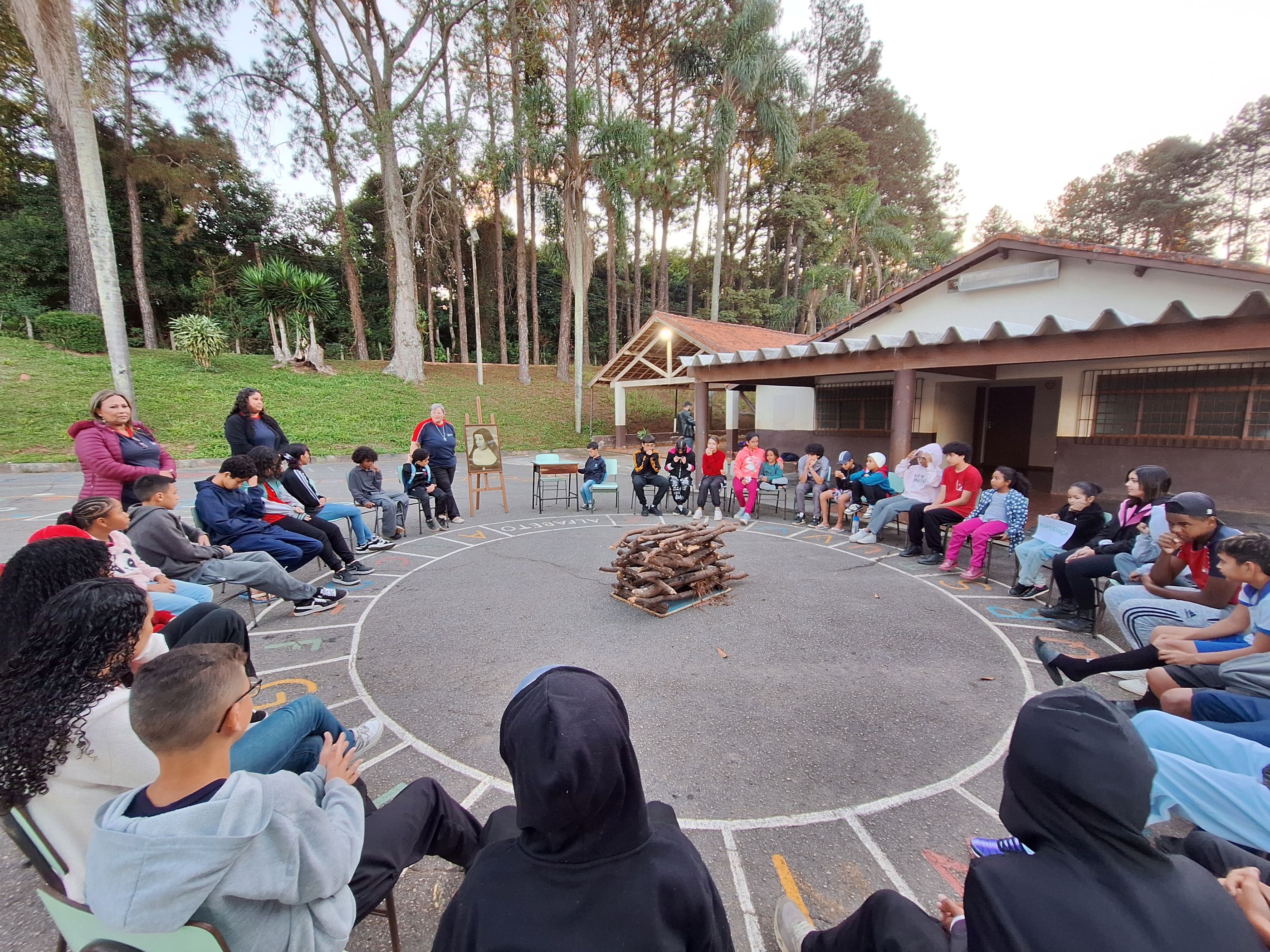A segunda parte do encontro foi ao redor de uma fogueira, onde todos cantaram e, por meio de um quiz, aprofundaram fatos da vida de Mazzarello.