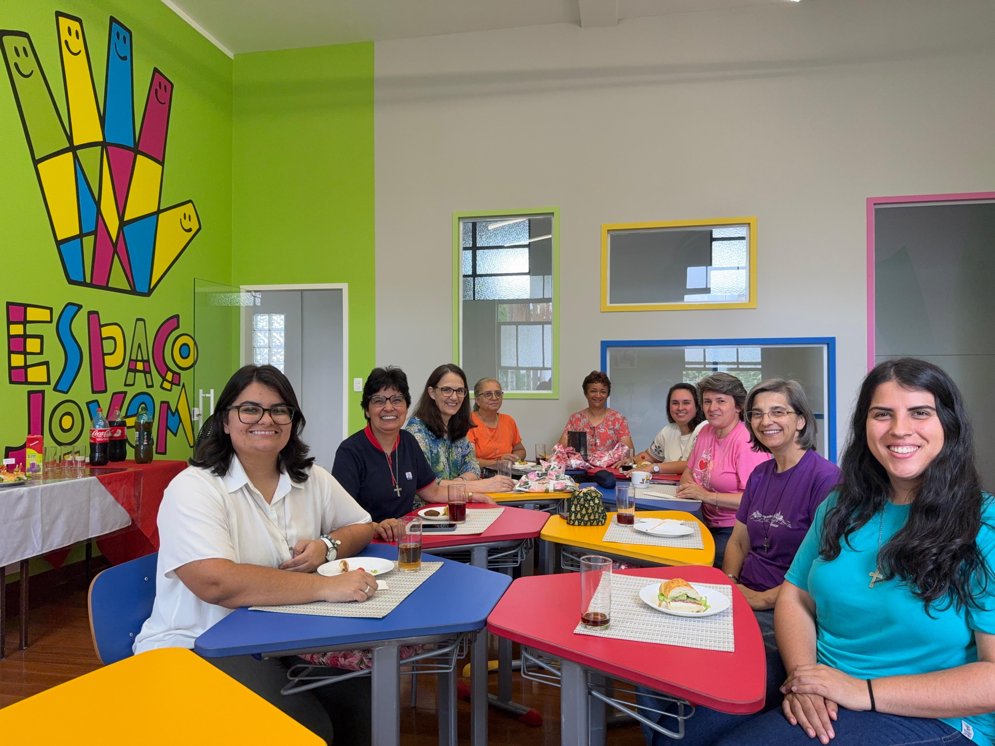 No dia 15 de dezembro, na sede da Inspetoria Nossa Senhora Aparecida (BAP), de São Paulo (SP), a equipe do Âmbito da Pastoral Juvenil se encontrou para a última reunião do ano. Marcaram presença: Irmã Teresa Cristina P. Domiciano (Coordenadora), Irmã Gisele Coelho (Animação Vocacional e Articulação da Juventude Salesiana), Irmã Lúcia Jacinta Finassi (Escolas), Irmã Luana de Oliveira (VIDES), Irmã Valentina Hurtado (Missão), Irmã Miriam Angélica L. dos Santos (Ação Social), Irmã Cleonice Lourenço (Pastoral Universitária), Irmã Denize Salvador (Catequese) e Isadora (Assessora da Pastoral).