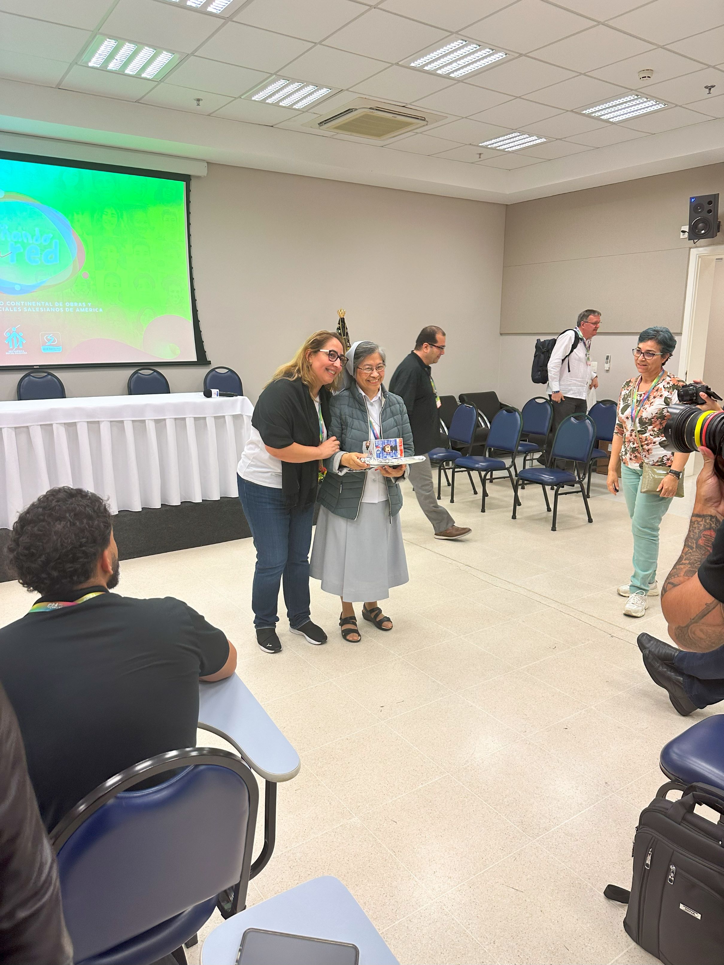 Com o tema “Sonhando em Rede”, o Encontro Continental de Obras e Serviços Sociais Salesianos na América reuniu, em Aparecida (SP), nos dias 09 a 13 de setembro mais 120 participantes, salesianos, salesianas e leigos das diversas presenças sociais de toda a América. O evento contou a presença de diversos representantes do mundo salesiano: Pe. Miguel Ángel García Morcuende (Conselheiro Geral para a Pastoral Juvenil), Ir. Sarah Garcia (Responsável pela Oficina de Direitos Humanos do Instituto das FMA, Representante Principal ante as Nações Unidas e Referente da Ação Social), Pe. Joseph Pabru (Diretor Executivo do Fórum Nacional Dom Bosco para Jovens em Risco). Da Inspetoria Nossa Senhora Aparecida (BAP) estiveram presentes: Irmã Mirian Angélica (CEMIC de Lins), Irmã Luana Oliveira (Casa do Puríssimo Coração de Maria), Irmã Teresa Cristina Pisani Domiciano (Coordenação Inspetorial da Pastoral Juvenil), Rosemeire Gomes (Coordenadora Inspetorial da Ação Social) e Samuel Caetano (Coordenador de Projetos do Lar Padre Jacó, de Itajaí - SC). O objetivo do encontro foi incentivar o trabalho em rede de obras e serviços salesianos para jovens e comunidades em situação de vulnerabilidade e exclusão na América, com abordagem às realidades juvenis e à sustentabilidade carismática dos processos em resposta às suas necessidades.