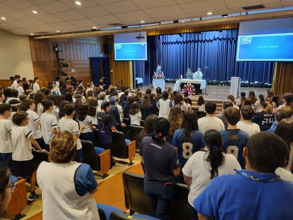 Quase encerrando o mês, no dia 28 de maio à noite, tivemos o terço luminoso. Momento de oração e devoção a Nossa Senhora, onde pedimos, principalmente, pela população do Rio Grande do Sul que sofre com as enchentes. Os alunos do 5° Ano, ao fim do terço, coroaram Nossa Senhora, deixando esse momento ainda mais bonito e significativo.