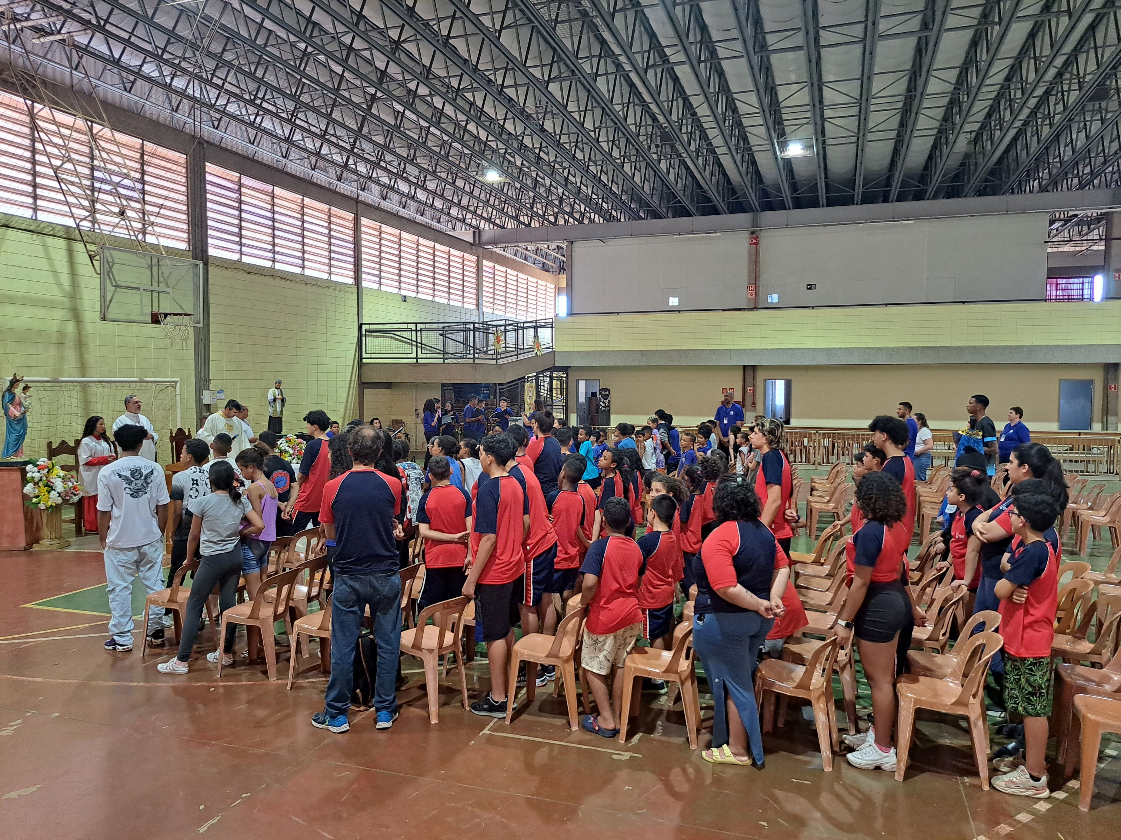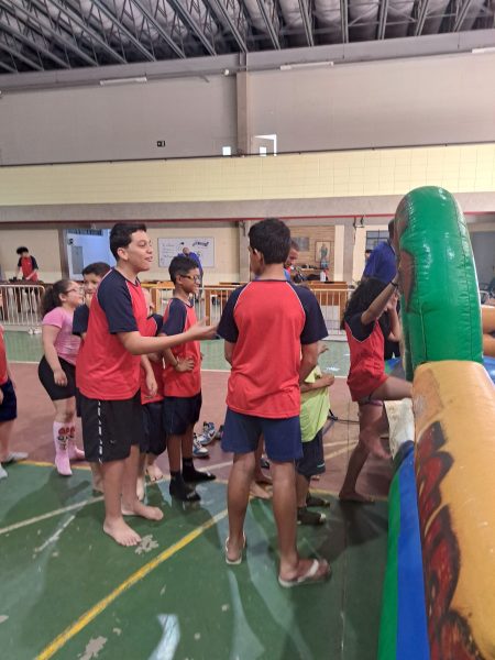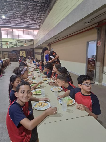 Após a celebração, os educandos puderam aproveitar novamente os brinquedos infláveis, mesas de jogos e atividades recreativas, num ambiente de alegria, amizade e união. O jantar fechou a programação com o mesmo cardápio festivo do almoço: strogonoff, salada de alface, batata palha, pavê e refrigerante.