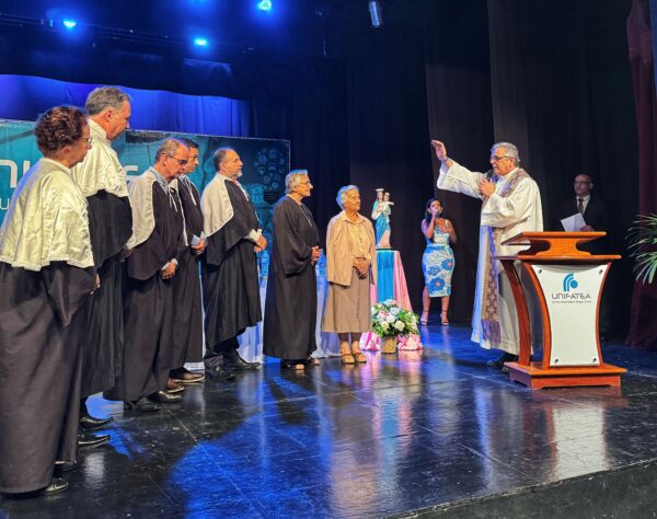 “Eu estou aqui há 23 anos a respirar o ar deste lugar e sentir no ar as nuances, por menores que sejam. E cada vez que entro aqui, está tão gostoso, está tão bom”, declarou o Padre Pedro Cunha, emocionado ao relembrar sua longa ligação com o Unifatea.