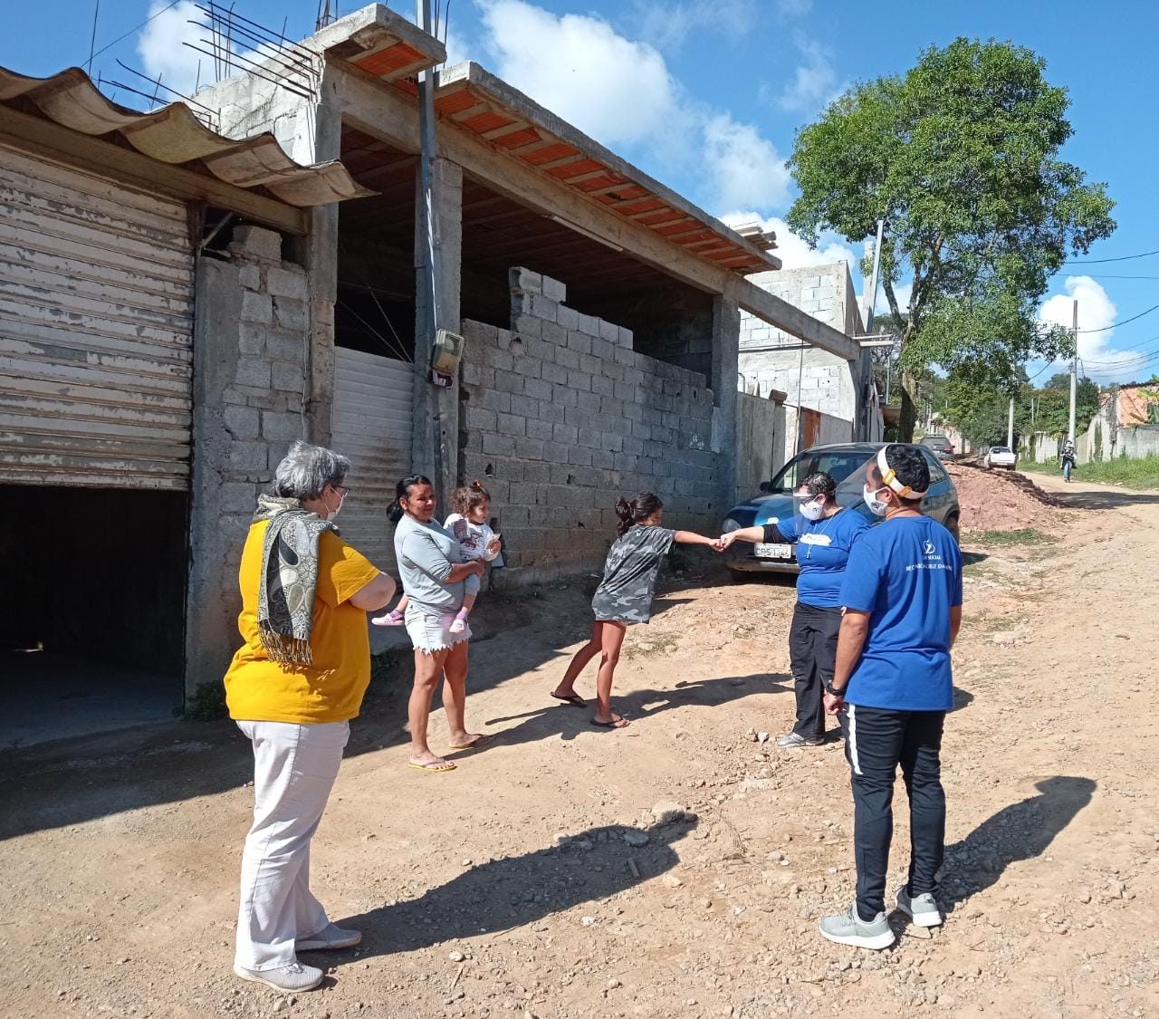 No período da manhã, a equipe participou do Movimento da Alegria e da Esperança, ação pedagógica/pastoral do Projeto Crescendo em Cidadania durante a Pandemia, que circula pelas ruas dos bairros Monte Serrat, Jurema e Parque Miraflor.
