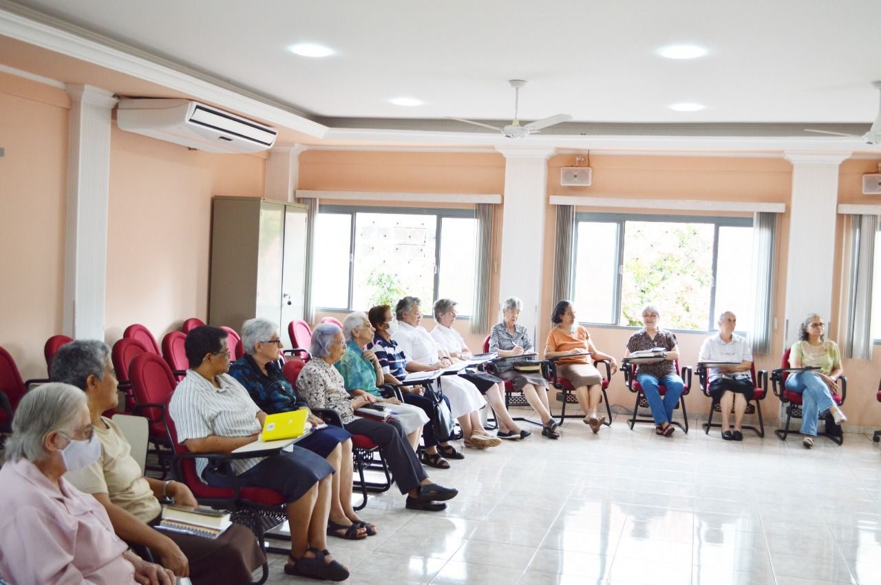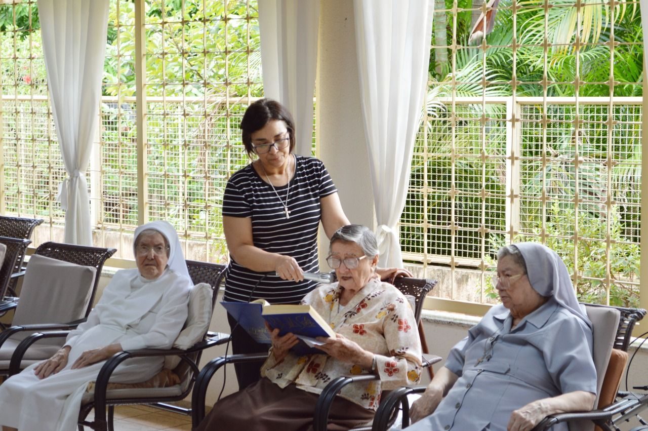 Durante a transmissão, Irmã Solange apresentou o tema do XXIV Capítulo Geral de forma dinâmica e vivencial, através da Leitura Orante do Evangelho de João 2, 1-11.